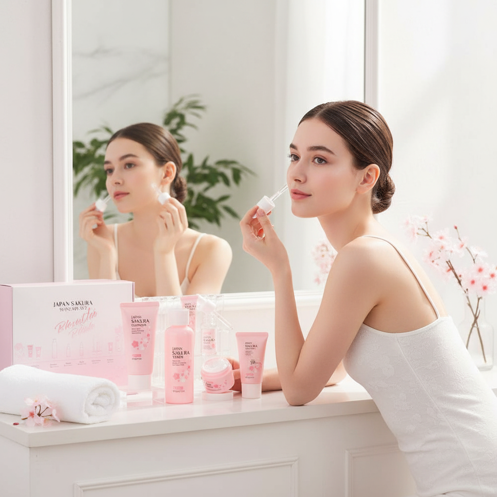 Six essential products in one beautiful set. Professional results at home. Gift-ready packaging.